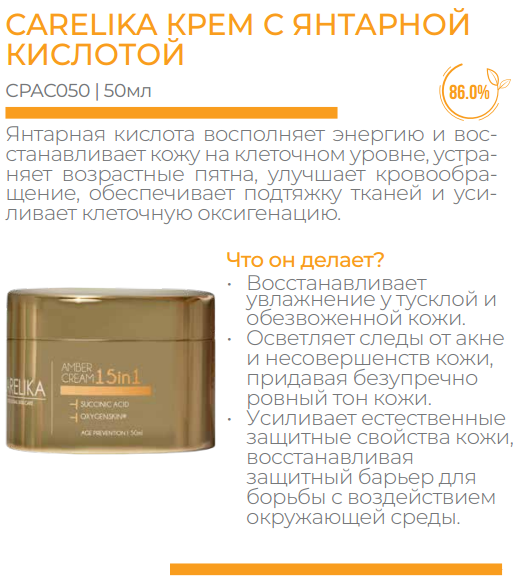 AMBER CREAM Крем с янтарной кислотой 15 in1 (with Succinic Acid 2%), 50 мл